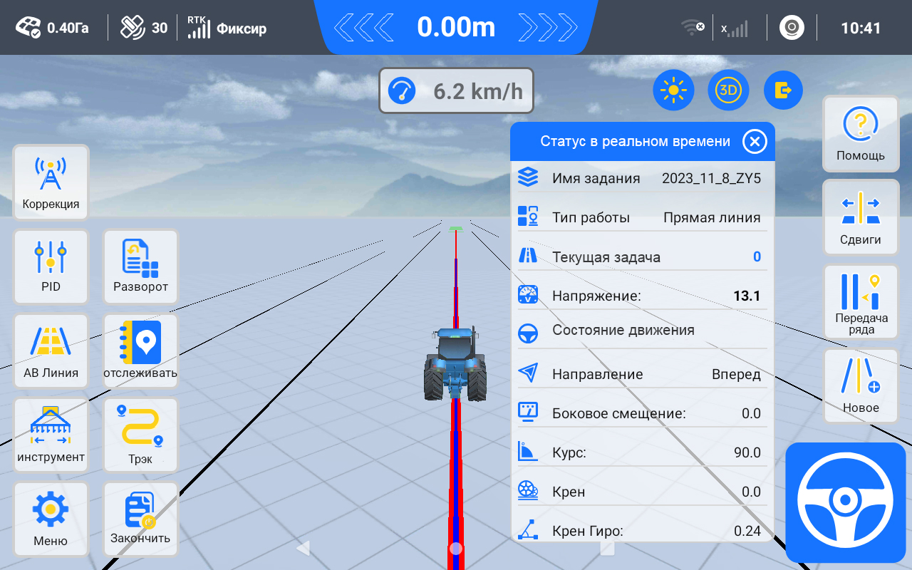 Автопилот Азимут имеет встроенную бесплатную функцию авторазворота и удобный менеджер её настройки. Система позволяет включать кнопки принудительной активации разворота вправо или влево, выбирать направление движения относительно контура поля и в любой момент отменить текущее задание на разворот.