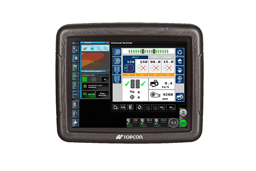 ISOBUS позволяет подключать контроллеры агрегатов к консолям Topcon для управления их функциональностью через экран универсального терминала. Универсальный (ранее известный как виртуальный) терминал X23/25/35 поддерживает прямое управление контроллерами сажалки, сеялки и опрыскивателя на основе стандарта ISO11783 без дополнительных настроек (plug-and-play). Консоли также поддерживают управление расходом (RC), секциями (SC) и задачами ISO (TC) для ISO-совместимых контроллеров, поддержку до 200 секций агрегата, активацию режима ISO Ground и передачу GPS-сообщений NMEA2000 по ISOBUS для оборудования без датчика скорости.