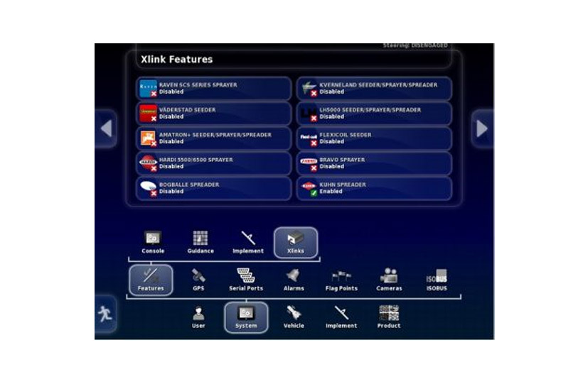 XLinks позволяет выводить на консоль X25/35 экран управления контроллера орудия стороннего производителя, а также добавить автоматическое управление секциями (ASC) и переменную норму внесения (VRC) к функционалу существующего оборудования.